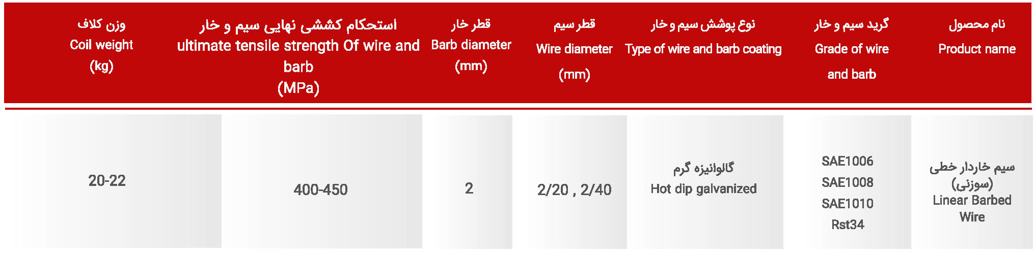 سیم خاردار خطی میهن نور دارای خارهای سوزنی است که تماماً از مفتول گالوانیزه ساخته شده است. خارهای سوزنی به صورت منظم در طول سیم قرار گرفته اند تا حداکثر حفاظت را ارائه دهند